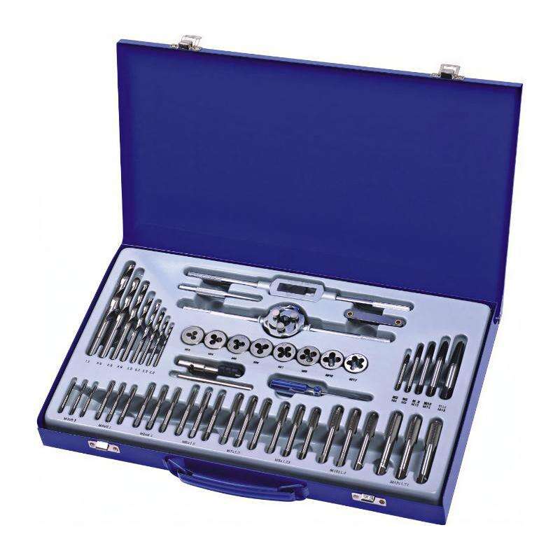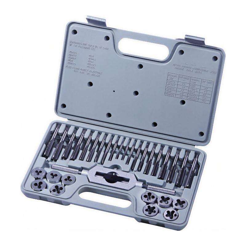 We offer a comprehensive range of professional Tap and Die Sets for creating and repairing internal and external threads. These kits are essential for mechanics, engineers, and maintenance professionals. Available in various piece counts (e.g., 40, 60, 110 pieces) and material grades (High-Speed Steel, Alloy Steel), our sets provide a complete solution for all standard threading tasks.